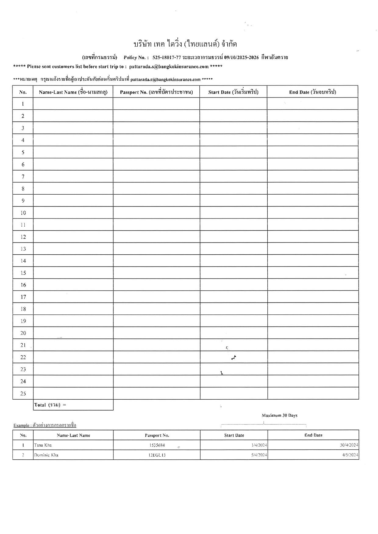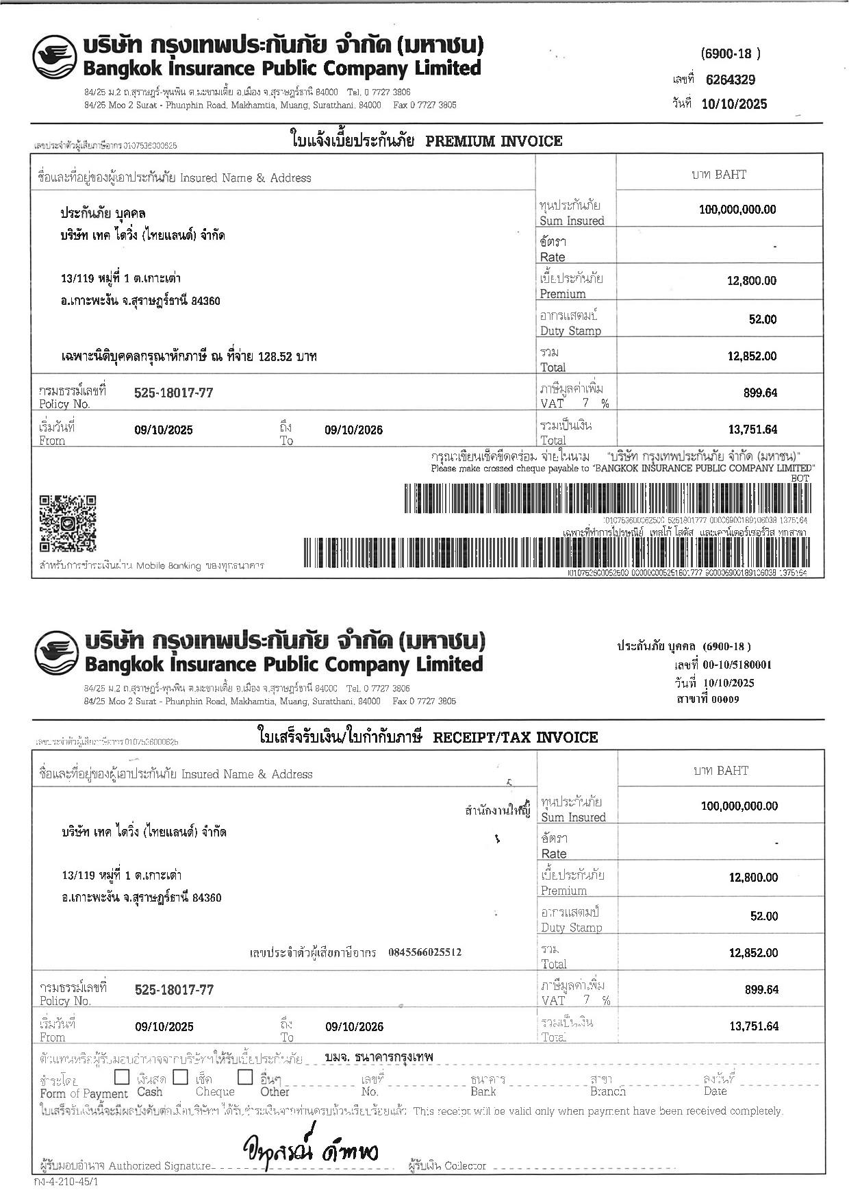 Our own liability and accident insurance with Bangkok Bank Diving Insurance for Tech Diving Thailand Co. Ltd. in Thai (So you're Doubly Insured!)